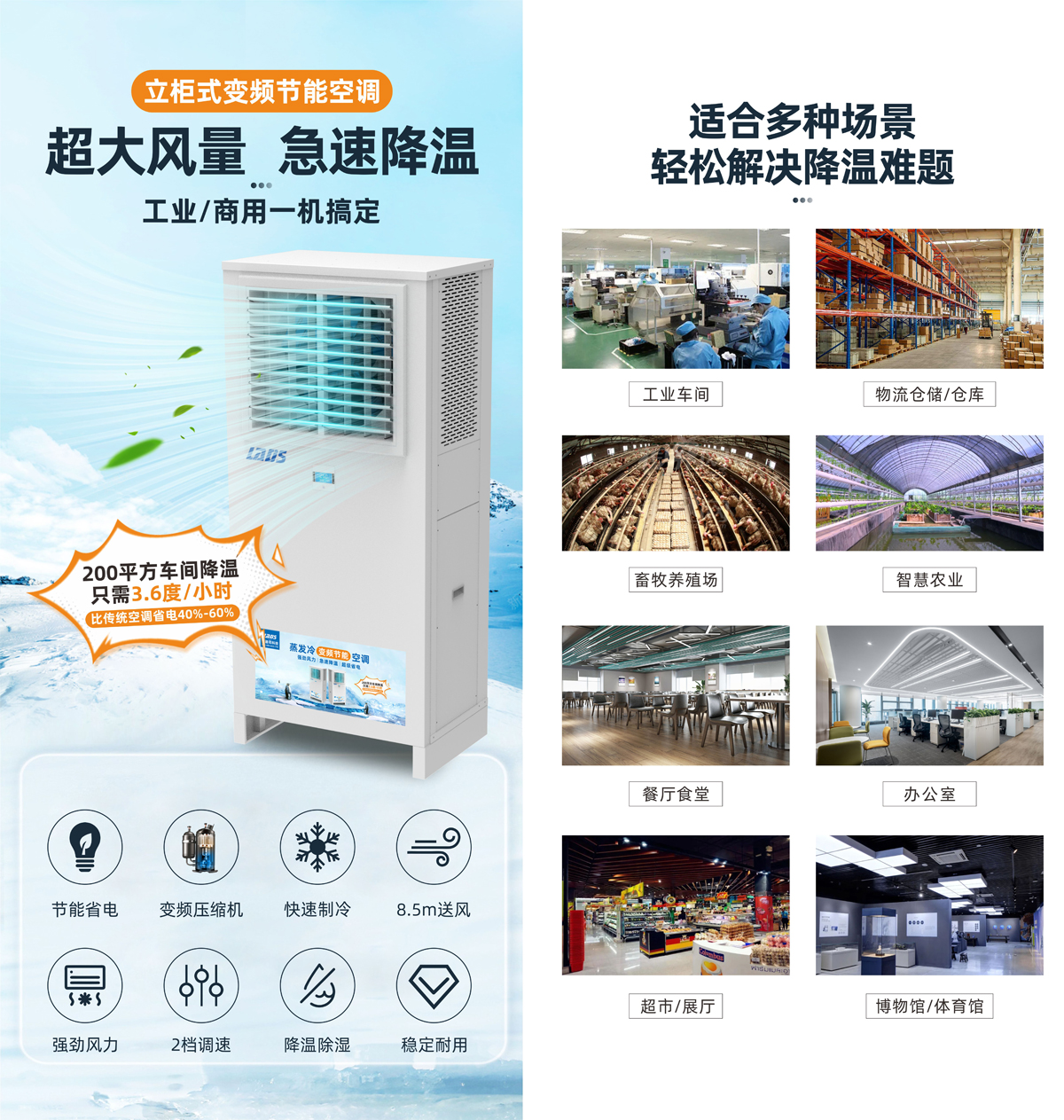 雷迪司立柜式蒸發冷變頻節能省電空調